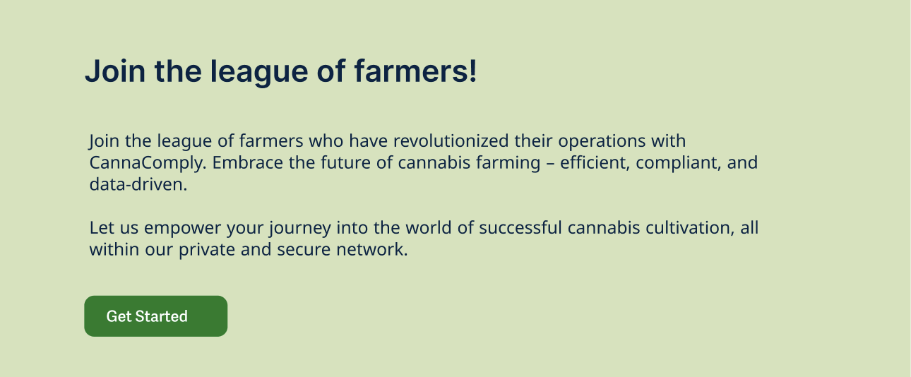 Why CannaComply Puts the Farmer First: Central to our ethos is the farmer. We believe that farmers are the backbone of our communities, tirelessly nurturing the land and cultivating crops that sustain us all. At CannaComply, we have designed a private and secure network specifically tailored for cannabis farmers. Here, they can effortlessly navigate the intricate landscape of their trade, unburdened by the complexities that often accompany compliance and regulations.